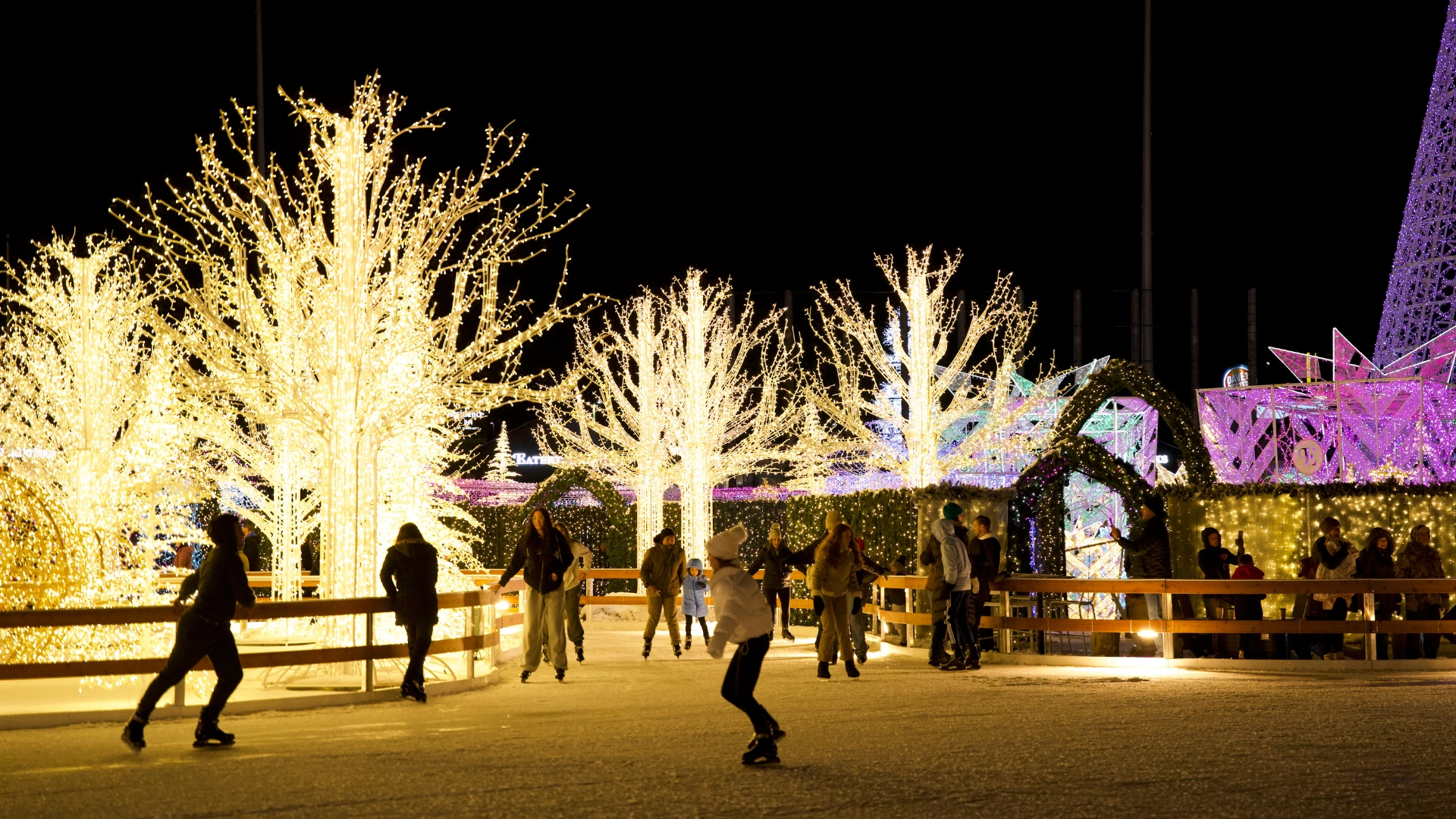 - Put on your skates and glide around the ice trail for a fun and festive experience! Enjoy about 30 minutes of skating, surrounded by twinkling lights and holiday cheer.